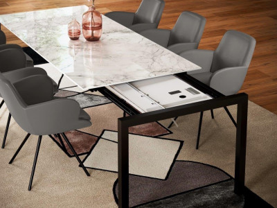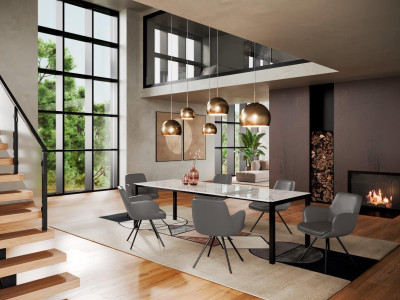Der Tisch Mod. Prato macht mit Auszugtechnik oder in fixer Ausführung eine gute Figur. Dieser Tisch geizt nicht mit seinen Reizen, hält sich aber diskret zurück, wenn er nicht im Zentrum steht.