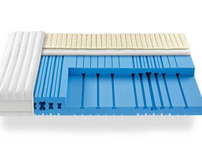 Hochflexibler Mehrzonenkern aus atmungsaktivem Porotex mit Luftzellstruktur. Neue Schulterentlastungsaufnahme SEA mit extra- wirksamer Schulteraufnahmeprofilierung in Form von Schmetterlingen. Druckentlastender Oberflächenschnitt und effizientes Querbelüftungsprofil. Integrierte Gesäss- und Rückenstütze. Kernhöhe 16 cm, Matratzenhöhe ca. 18 cm.