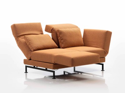 Großzügig dimensioniert bei moule-medium oder mit kompaktem Maß bei moule-small. Separat zum Entspannen vorschwenkbare Sitze und stufenlos absenkbare Arm- und Rückenlehnen ermöglichen vielfältige Entspannungspositionen – bis hin zum bequemen Liegen.