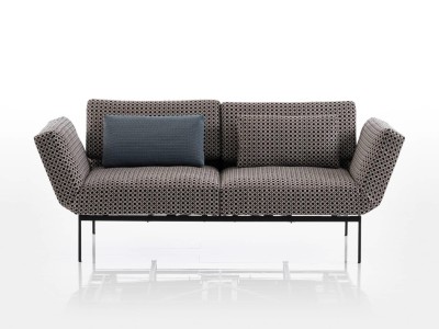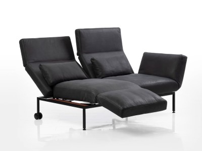 Drehsitze, um 90 Grad schwenkbar, sowie stufenlos verstellbare Lehnen schaffen im Nu komfortable Sitz-, Lounge- und Liegepositionen. Glatte, kubische Polsterflächen und ausgewogene Proportionen, das grazile, funktionale Untergestell, zeugen von einer durchdachten Gestaltung mit Fokus auf formklare Ästhetik und Gebrauchswert. Schmale Holzblenden unter den Drehsitzen ermöglichen das Abstellen kleiner Gegenstände. Zu erweitern mit Einzelsesseln, Zweisitzern, Longchairs, Hockern sowie speziellen Anbauelementen. Bezüge abziehbar.