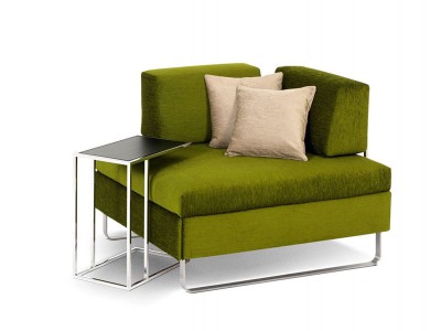 Der BED for LIVING HOCKER passt im Stil zu DOPPIO und SINGOLO, ist aber deutlich kompakter. Trotzdem lässt er sich in ein komfortables Einzelbett verwandeln: einfach die obere Matratze umklappen – und fertig! Der Matratzenunterbruch befindet sich beim Schlafen auf Oberschenkelhöhe. So stört er Sie nicht beim Träumen. Kissen und Rückenelemente lassen sich individuell kombinieren und platzieren.