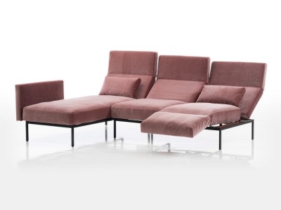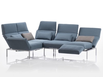 Drehsitze, um 90 Grad schwenkbar, sowie stufenlos verstellbare Lehnen schaffen im Nu komfortable Sitz-, Lounge- und Liegepositionen. Glatte, kubische Polsterflächen und ausgewogene Proportionen, das grazile, funktionale Untergestell, zeugen von einer durchdachten Gestaltung mit Fokus auf formklare Ästhetik und Gebrauchswert. Schmale Holzblenden unter den Drehsitzen ermöglichen das Abstellen kleiner Gegenstände. Zu erweitern mit Einzelsesseln, Zweisitzern, Longchairs, Hockern sowie speziellen Anbauelementen. Bezüge abziehbar.