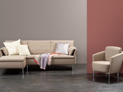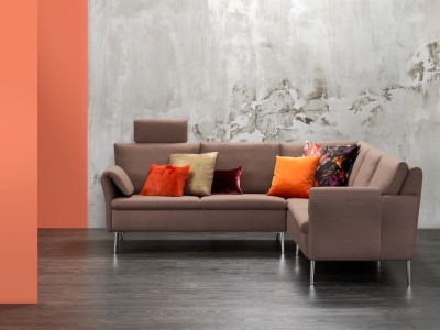 Dieses Modell ist in der Möbelhalle Bern als Ecksofa ausgestellt und kann individuell (Grösse, Form, Bezug) zusammengestellt werden.