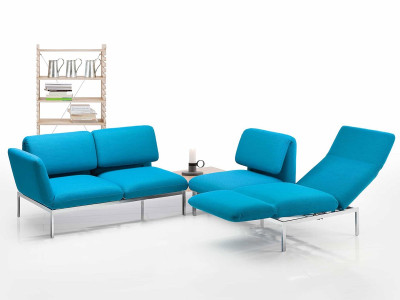 Die Ecksofas von roro-medium und roro-small lassen sich mit wenigen Handgriffen individuell zum Sitzen, Entspannen oder Liegen einstellen. Die Ensembles werden aus einem Longchair und einem Anstellsofa gebildet oder auch aus zwei Anstellsofas, die durch ein Tischmodul verbunden sind. Die äußeren Sofasitze sind jeweils drehbar und können sich in Lounge-Liegen verwandeln. Die inneren Sitze können durch einen Hocker zu Liegen verlängert werden. Alle Rückenlehnen lassen sich auffalten und stufenlos absenken.