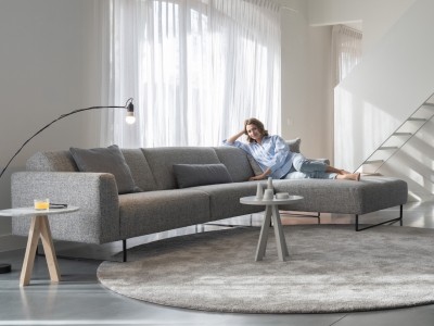 Dieses Sofa ist in der Möbelhalle Bern in einer anderen Kombination ausgestellt und kann individuell (Grösse, Form, Bezug) zusammengestellt werden.