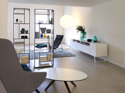 Vifian loop spielt mit einer raffinierten Mischung aus Material, Farben und Design. So lassen sich einzelnen Möbelstücke des Programms ideal miteinander kombinieren und je nach Bedarf in unterschiedlichste Raumverhältnisse und Einrichtungen integrieren. Mit feinen Linien und runden Eckelementen vermittelt vifian loop Leichtigkeit und Eleganz.