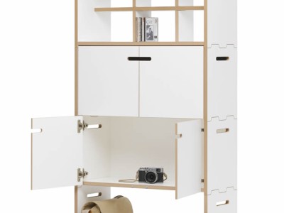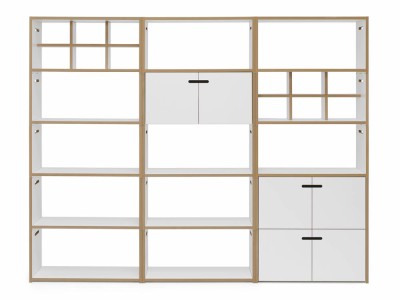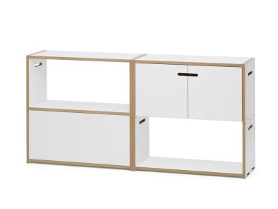 Ist ein freistehendes, horizontal und vertikal beliebig erweiterbares Regalsystem. Die markant ausgefrästen Seiten geben dem Möbel sein unverwechselbares Aussehen, dienen aber vor allem dem Verbund der Segmente untereinander. Durch die Befestigung des Bodens etwas unterhalb der Ausfräsung wird außerdem ein seitliches Verrutschen verhindert. Die Regalelemente sind auch mit Türen erhältlich. Diese Elemente verfügen zusätzlich auch über eine Rückwand.