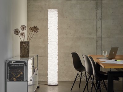 ELLA bedeutet Güte. Jeder Leuchtenschirm ist ein Unikat. In Handarbeit entstehen die weichen Strukturen. Technologisch ist ELLA ein High-End Produkt. Die Leuchte hat einen Schirm aus Baumwolle und überzeugt mit einem unglaublichen Licht von bis 14000 Lumen.